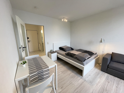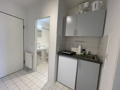 Vollständig möbliert, Laminatboden und Fliessen, Schrank, Bett, Schlafcouch für 2.Person, Schreibtisch, Esstisch, Fernseher, Küche mit Kühlschrank. Vollständig inventarisiert: Kaffeemaschine, Wasserkocher, Besteck, Töpfe, Pfannen, Gläser, Kochgeschirr, LED-Fernseher, WLAN-Internet-Flatrate etc. |